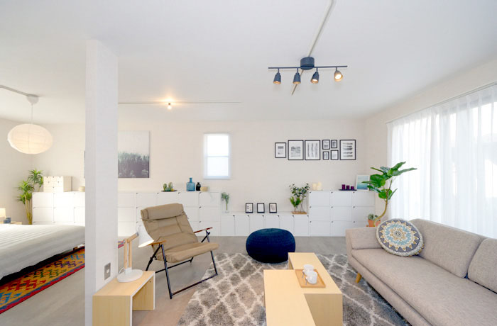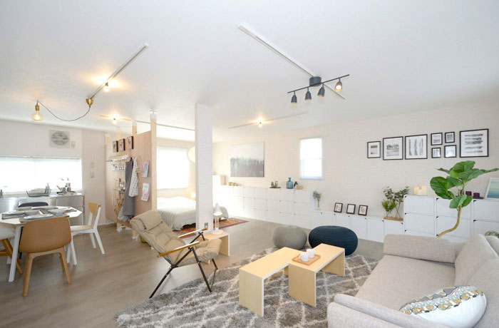 アパートの3DKを1Rの広いスペースに。住む方が自由にレイアウトを楽しめるお部屋に。